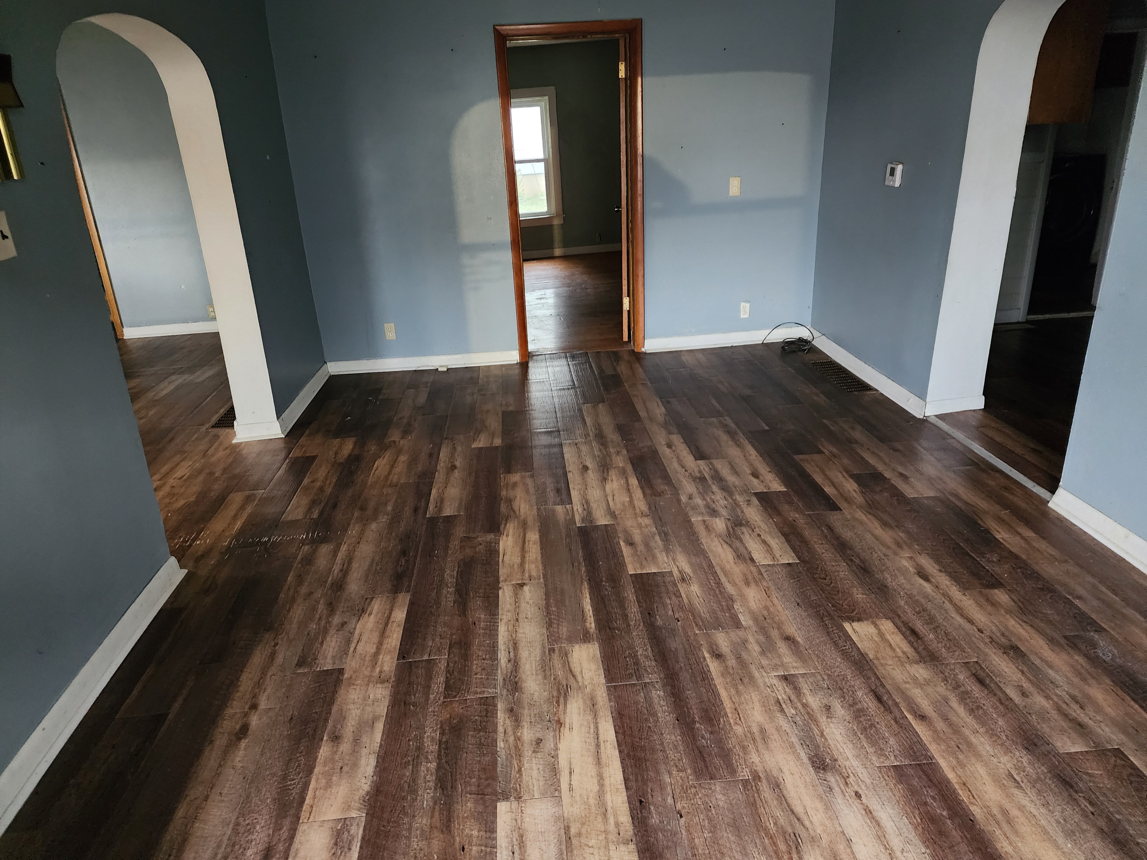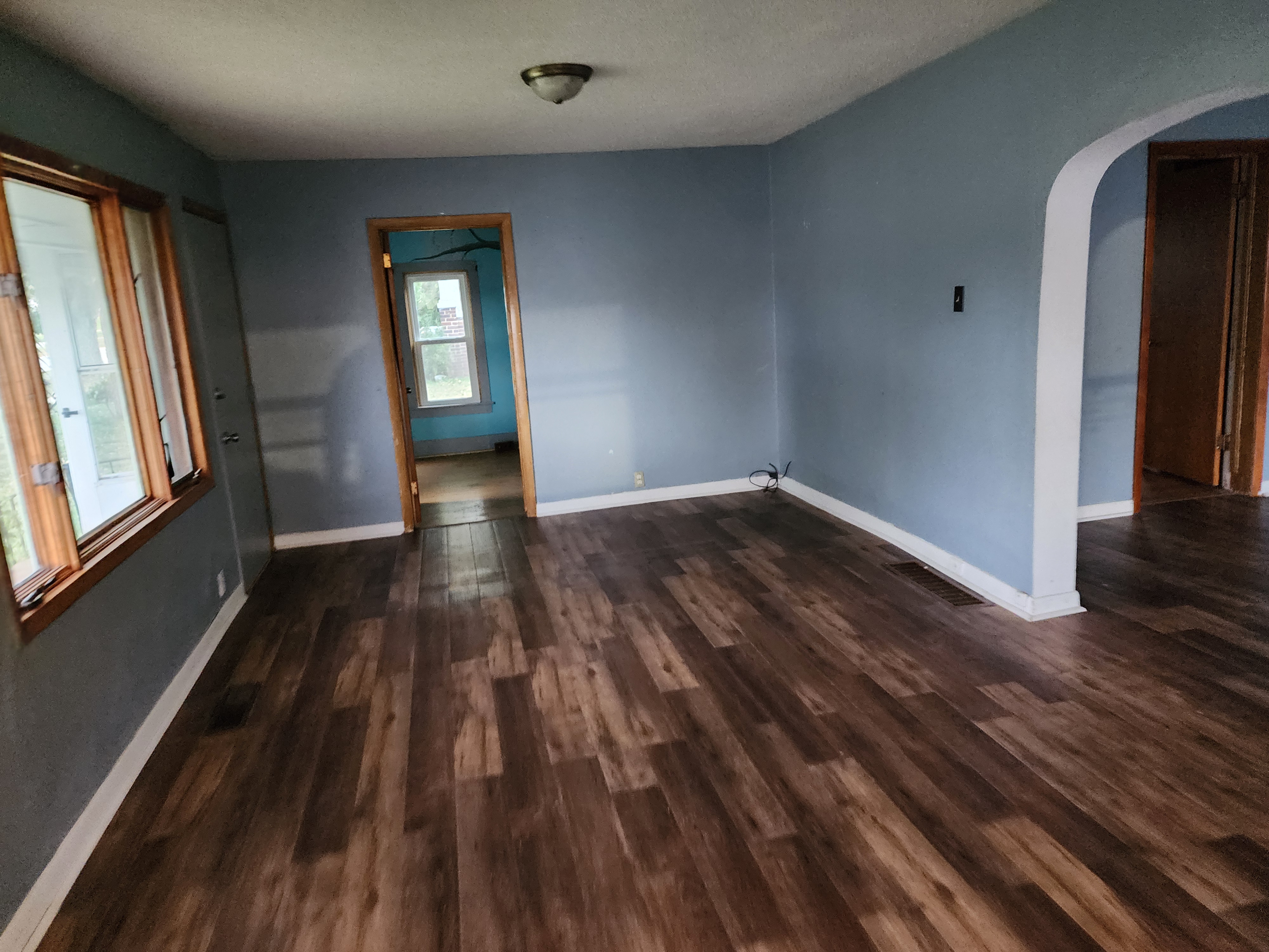 Affordable and move-in ready, this 2–3 bedroom home offers generous living space and functional upgrades. The large living room flows to a separate dining area — perfect for family meals and entertaining — and the eat-in kitchen provides plenty of workspace. Newer vinyl flooring runs throughout for easy maintenance. Outside, low-maintenance metal siding and numerous replacement windows add curb appeal and efficiency. Comfort is handled with forced-warm-air heating and central air. Great value for buyers seeking practical, well-maintained living.